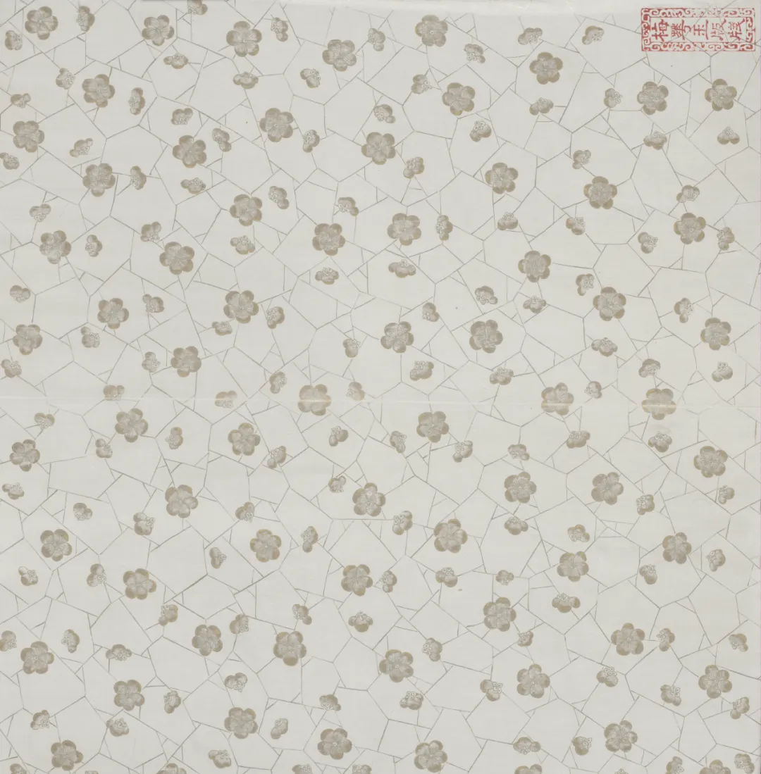A Qing Dynasty Qianlong period plum blossom jade-patterned paper, 49.1cm × 51.3cm, collection of the Palace Museum.